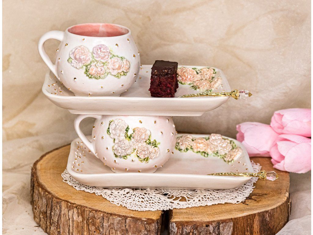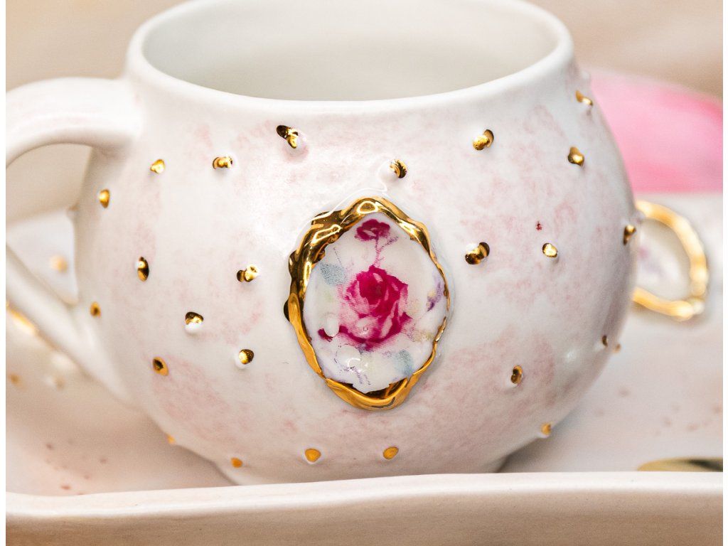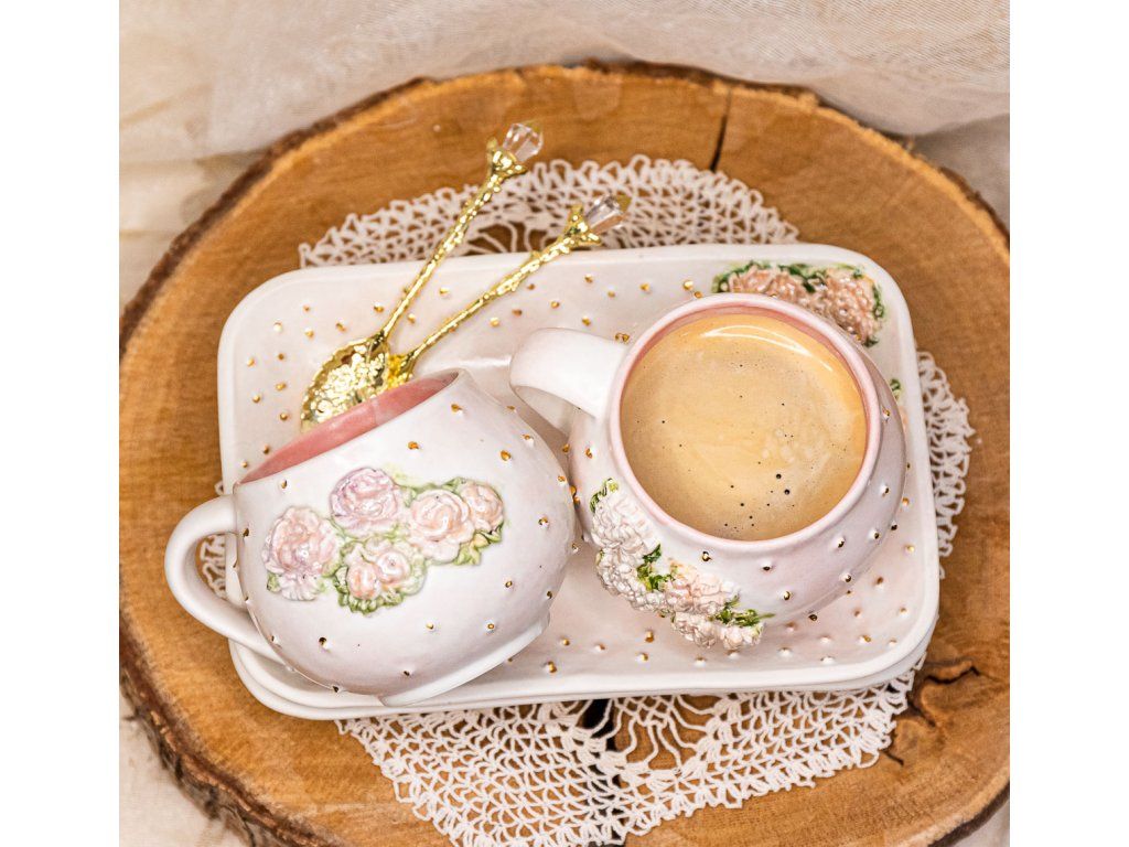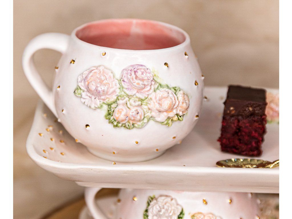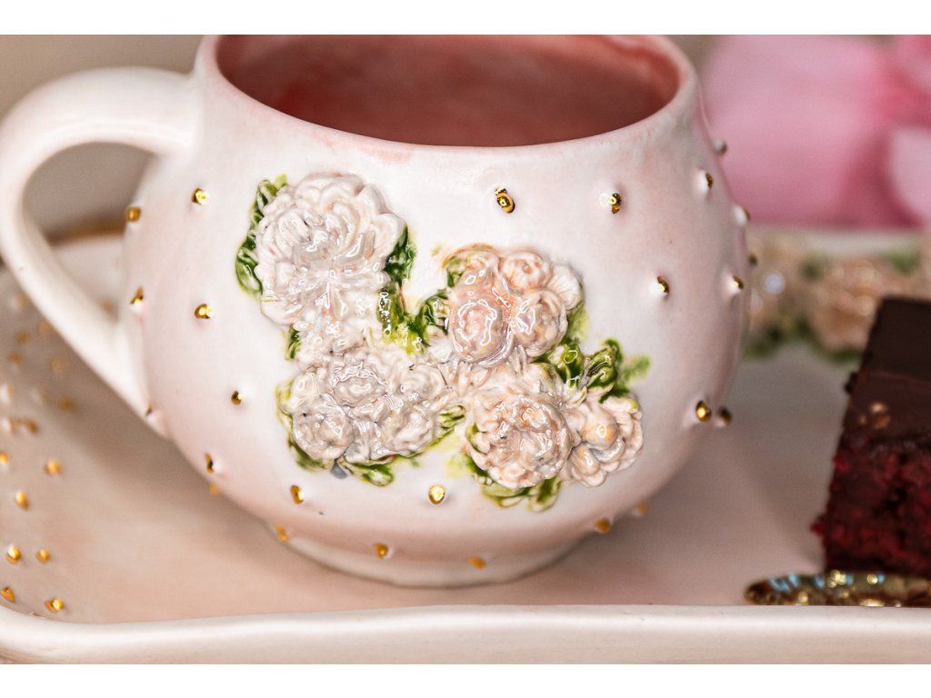Tieto hrnčeky v edícii "ROMANTIC" PIVONKA a RUŽE V RÁMIKU sú ručne vyrábané.