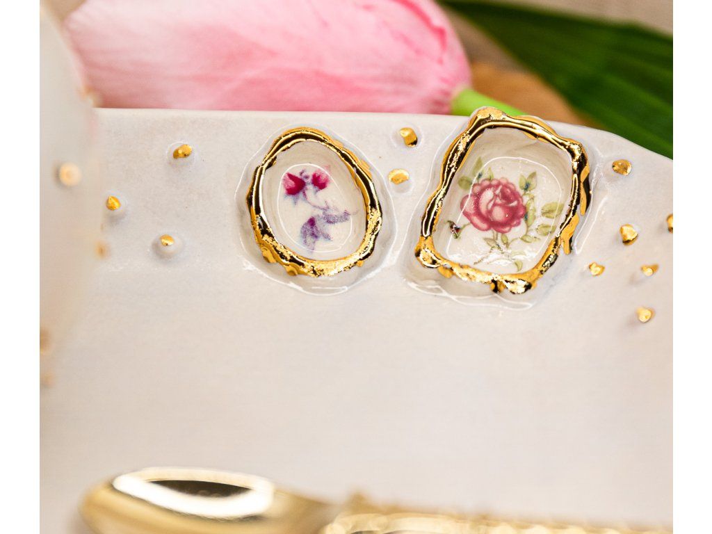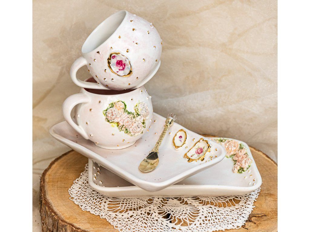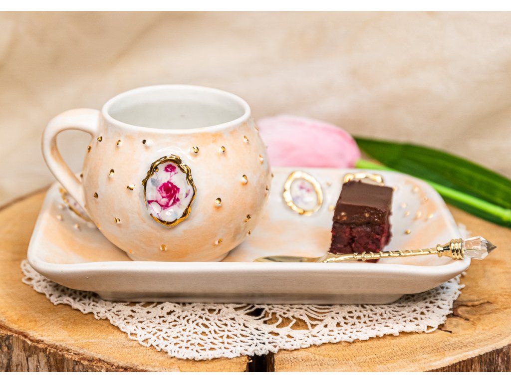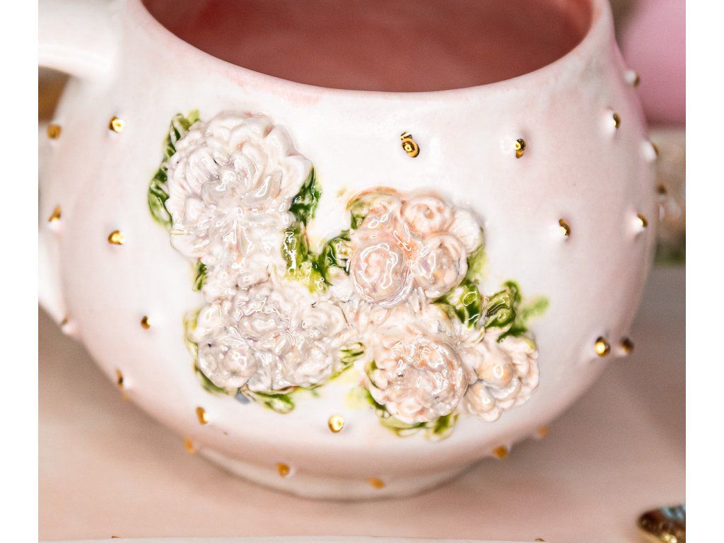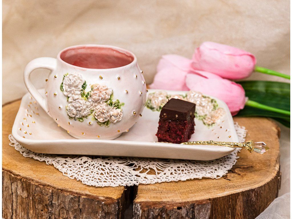 Tieto hrnčeky v edícii "ROMANTIC" PIVONKA a RUŽE V RÁMIKU sú ručne vyrábané.