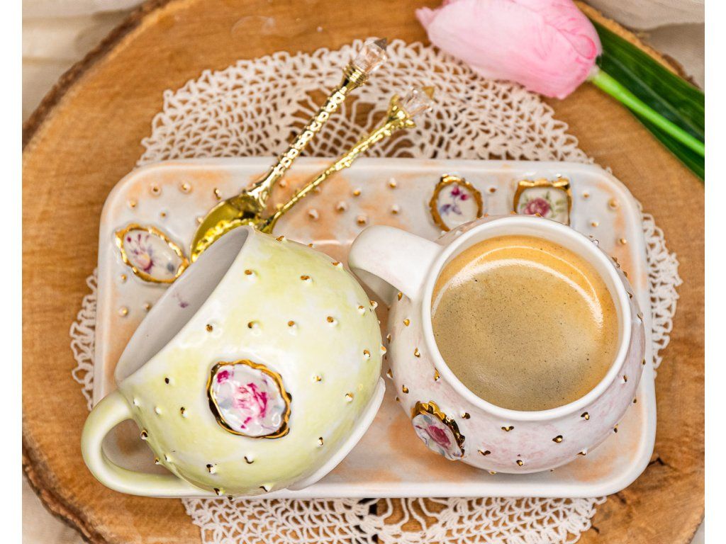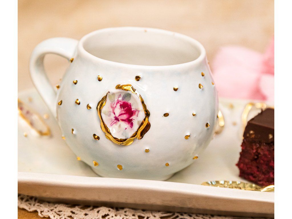 Doprajte si kávu v luxusnom štýle. Pozlátené hrnčeky z ateliéru AURACERA sú ručne robené originály s pravým zlatom pre váš stôl.