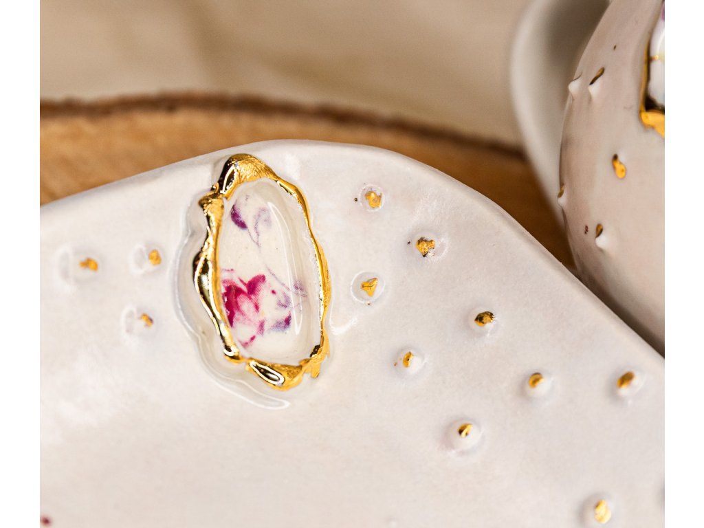 Materiál je pevný a kvalitný porcelán - nádherný jemný biely porcelán vypálený 9 hodín na 1220 °C, čo zaručuje výrobkom vysokú pevnosť, odolnosť voči obitiu a dlhú životnosť.